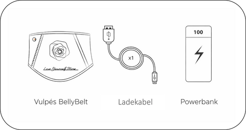 Ja, der Vulpés BellyBelt kann mit dem beiliegenden USB-A-Kabel genutzt werden. Das Kabel kann an einen 5V / 2A-Adapter, einen USB-A-Anschluss am Notebook, PC oder im Auto angeschlossen werden.