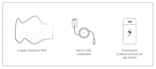 Die im Set enthaltene Powerbank hat eine Kapazität von 5.000 mAh (Pro) bzw. 10.000 mAh (Pro 10). Je nach gewählter Wärmestufe beträgt die Akkulaufzeit ca. 2,5–4 Stunden beim Pro-Modell und 3,5–12 Stunden beim Pro 10.